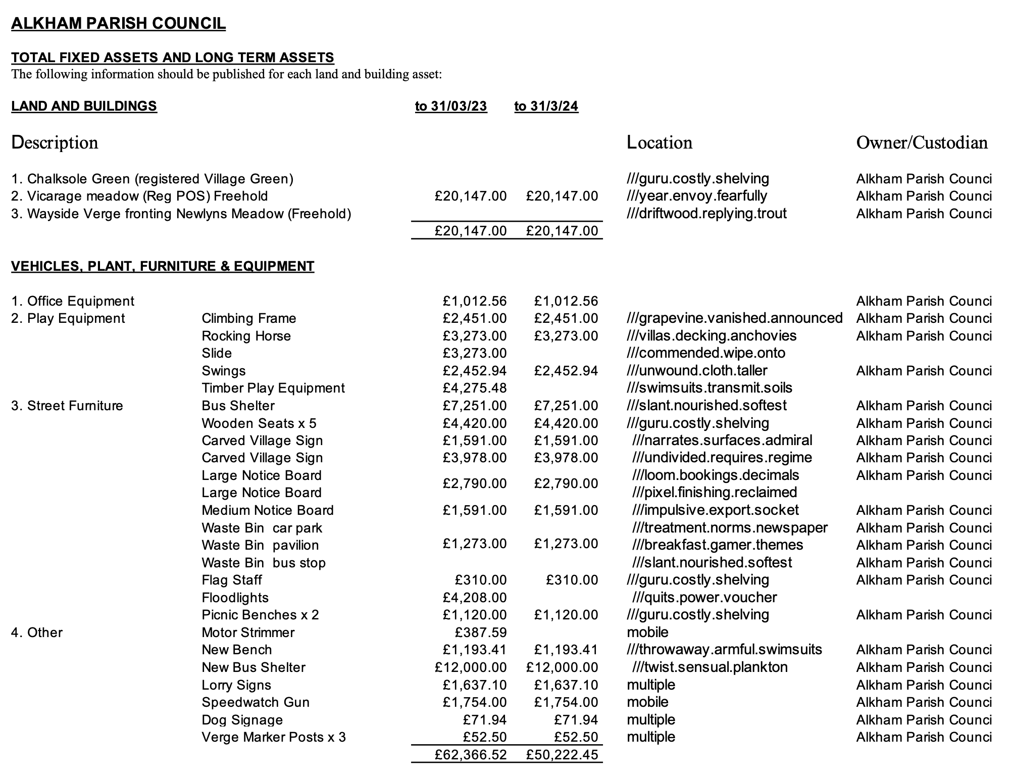 6. Asset Register – the details of public land & building assets (Website: Spreadsheet created by us with required info)