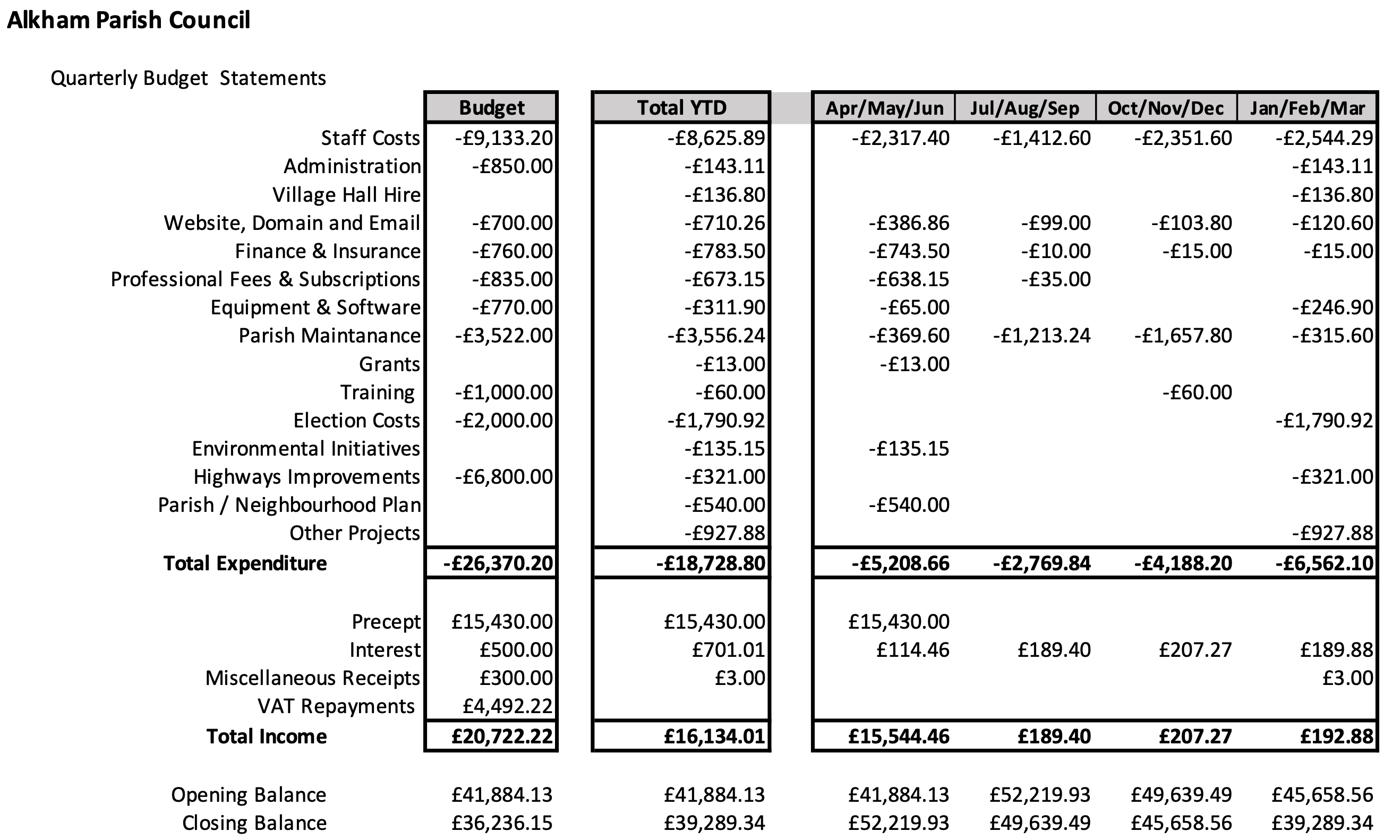 Keeping our community informed about the Parish Council’s financial matters is a priority. Every council meeting agenda includes a thorough review of our finances. Alongside the minutes available on this website, we also provide access to our Annual Returns and other pertinent financial reports right here.